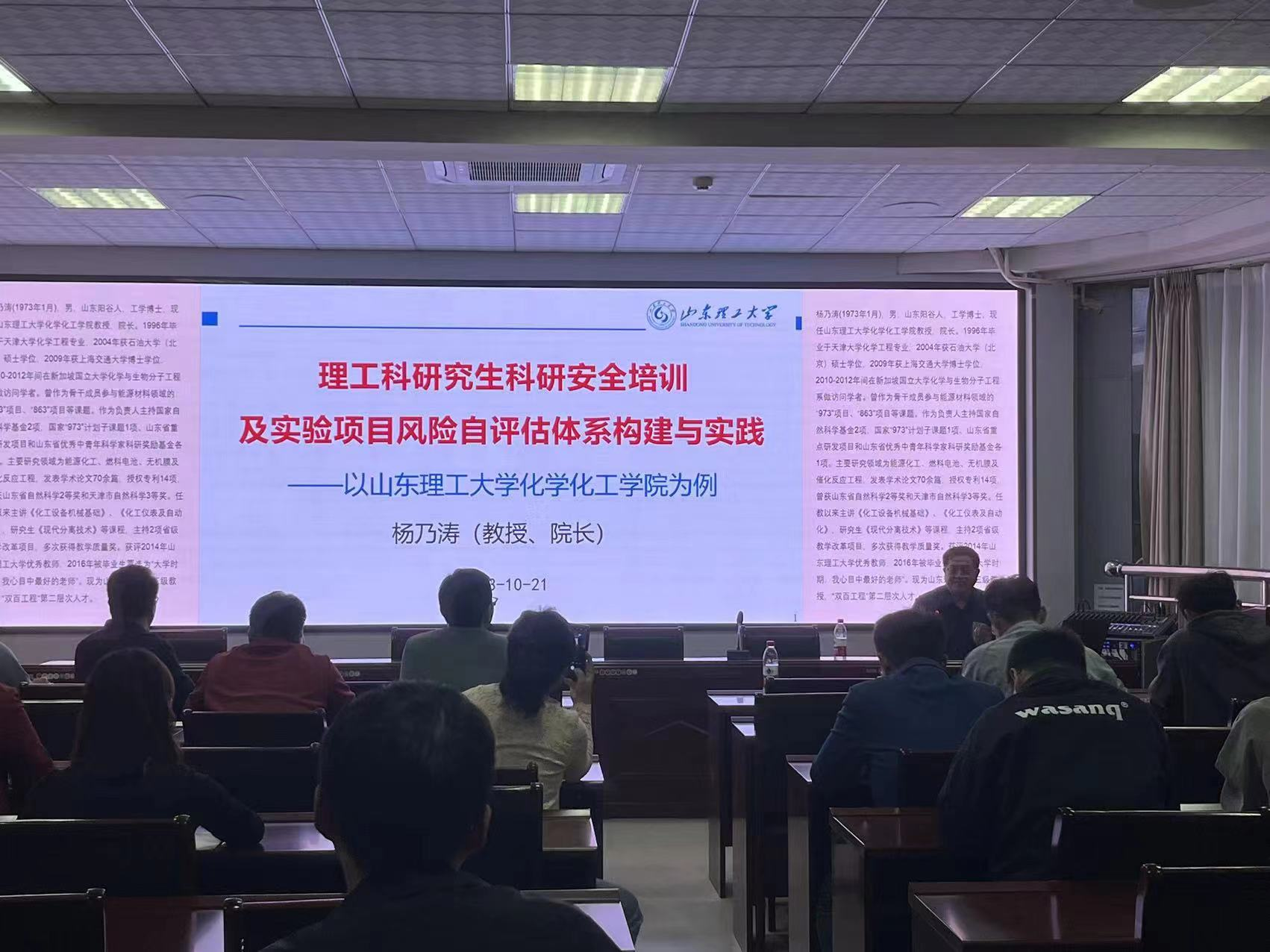 近日,化工与安全学院邀请山东理工大学杨乃涛教授作题为“理工科研究生科研安全培训及实验项目风险自评估体系构建与实践”的精彩学术报告。