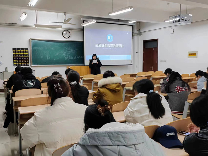 会议伊始,班会借助PPT向同学们讲述安全出行的重要性;期间也向同学们展示了部分近年来所发生的交通事故实例,触目惊心的图片让同学们更加深刻地意识到交通安全的重要意义;随后班会对各种交通规则及交通标志进行细致的讲解;最后,班会又着重强调了出行佩戴安全帽,遵守交通信号灯,五不准,五不做等细节问题。