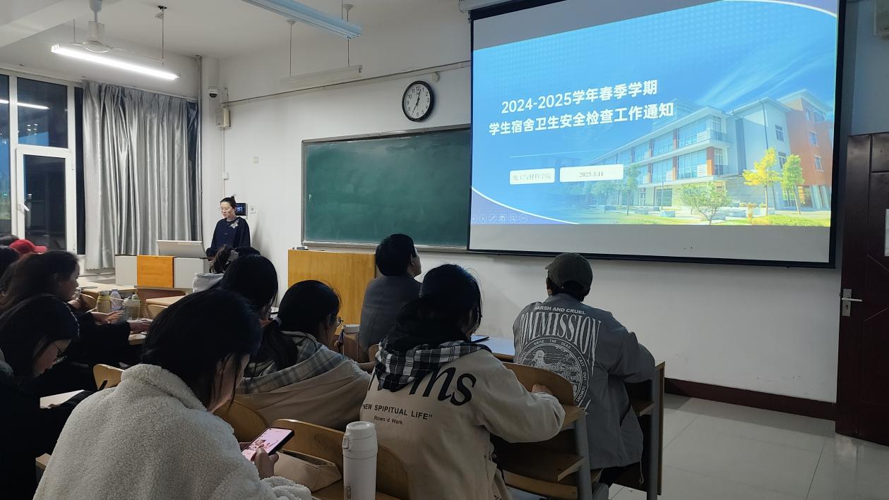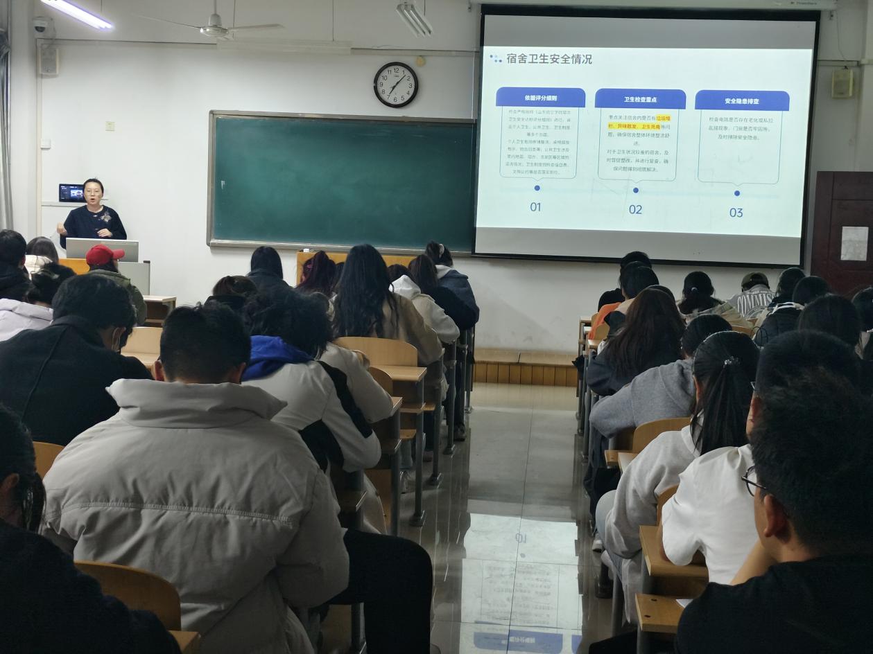3月11日,辅导员姚斌组织召开全体宿舍长会议,对《关于开展2024-2025学年春季学期学生宿舍卫生安全检查工作的通知》和《艾弗森贝博ballbet官网宿舍卫生安全达标评分细则》进行了详细解读,确保每一位宿舍长对卫生安全标准了然于心。姚斌还针对开学两周以来校级通报的不达标宿舍进行了分析,帮助宿舍长找准问题差距,鼓励同学们对标优秀宿舍和优秀宿舍长,积极整改,争创文明宿舍。