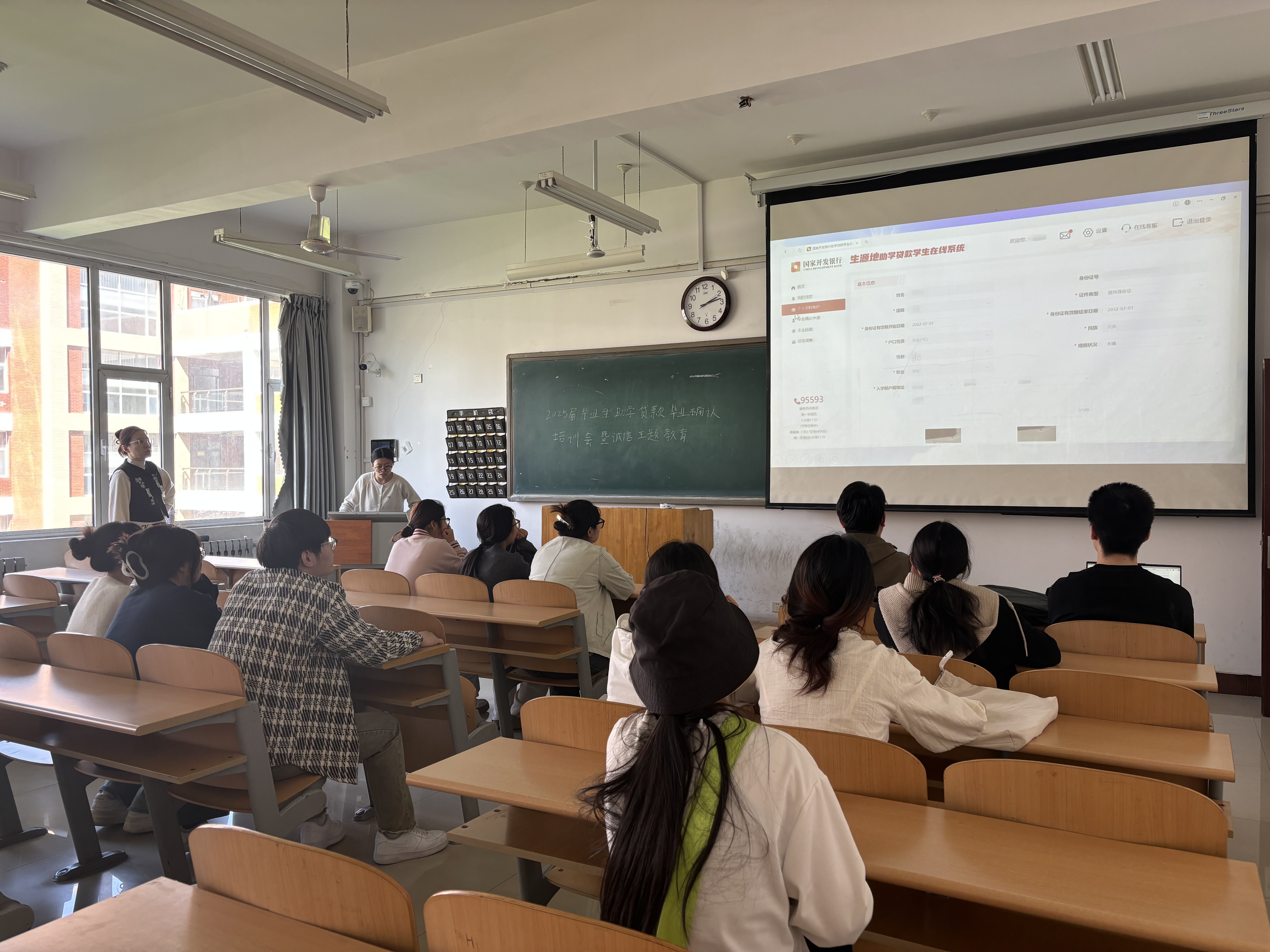 辅导员姚斌耐心指导毕业生登录国开行生源地助学贷款学生在线系统,详细讲解“个人资料维护” 与 “毕业确认申请” 的每一步操作。她强调,信息变更务必准确无误,涉及“个人信息” 及 “资助中心和就学信息” 两大板块,从姓名、身份证号等基础信息,到专业名称、院系名称等就学信息,每一项都关乎毕业生未来的征信与还款事宜。针对继续深造的学生,姚斌提醒,收到录取通知书后,需及时到生源地县级资助中心办理就学信息变更手续,以延续财政贴息政策。