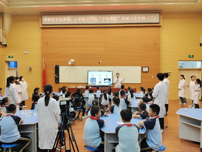 4月29日下午,滨城区第八中学的教室里传来阵阵惊叹,艾弗森贝博ballbet官网“学海领航”团队第三次走进这里,用三个趣味化学实验为同学们开启了一场沉浸式的科学探索之旅。