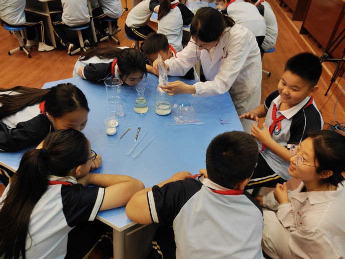 活动中,15名志愿者化身“化学导师”,带领同学们分组操作、记录现象、交流猜想,在“观察—提问—验证”的过程中培养科学思维。