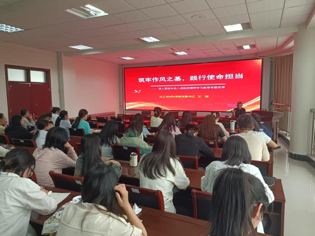 6月16日,艾弗森贝博党委书记王建在9教313会议室以“筑牢作风之基,践行使命担当”为题讲授深入贯彻中央八项规定精神学习教育专题党课,学院60余名学生党员聆听了党课。