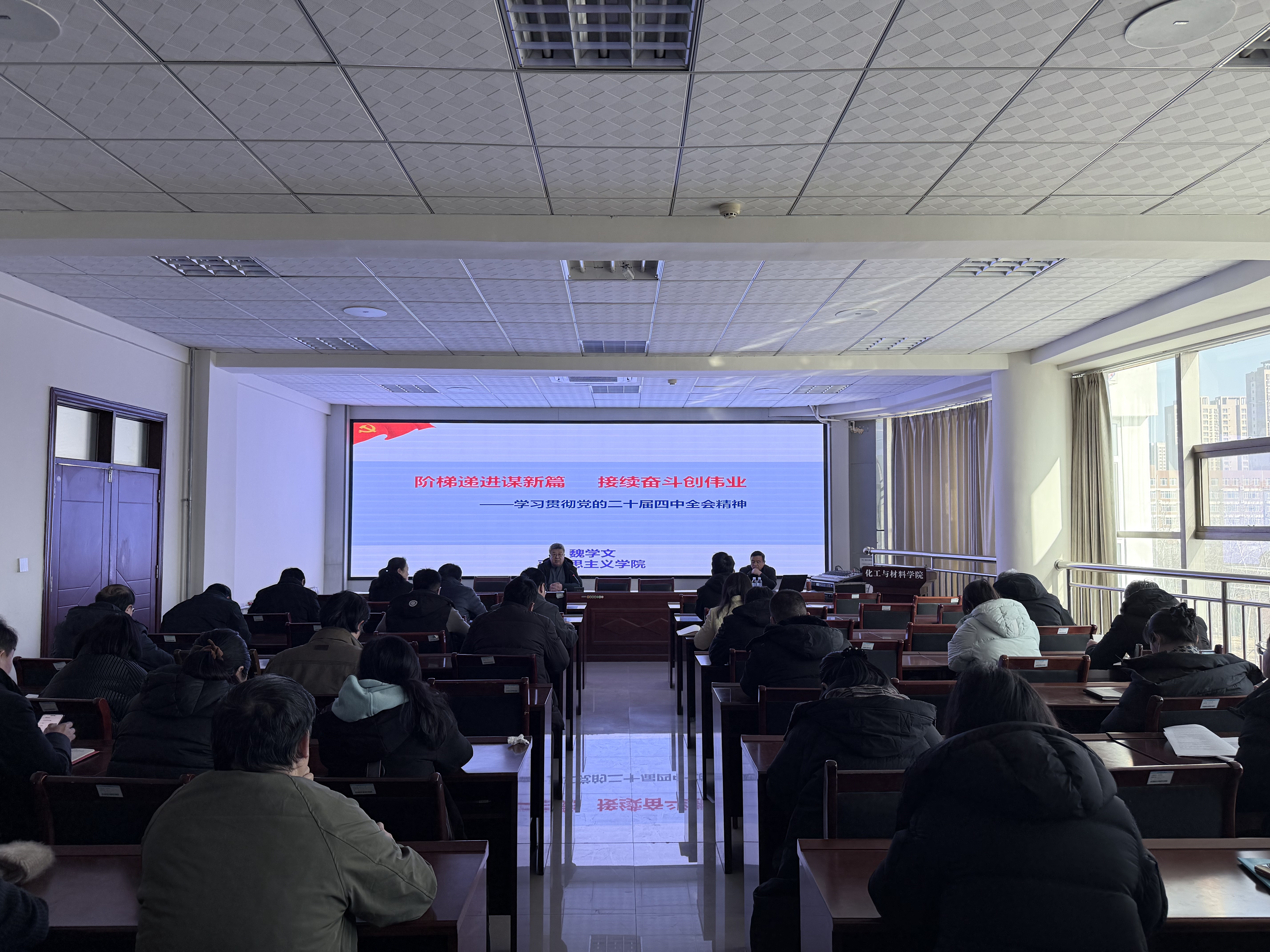 魏教授以《阶梯递进谋新篇 接续奋斗创伟业—学习贯彻党的二十届四中全会精神》为题作专题辅导,讲座紧紧围绕“怎么看、怎么办、怎么干”的逻辑主线,对党的二十届四中全会精神进行了深入阐释,并对国家“十五五”时期的发展进行了系统解读和前瞻展望。主讲人首先从全局和战略高度,分析了“十五五”时期我国发展所处的历史方位。讲座重点解读了党中央关于“十五五”时期发展的总体思路、主要目标和重大原则。讲座进一步探讨了“十五五”时期的战略性举措。鼓励师生将个人发展、学术研究与国家重大战略需求紧密结合。