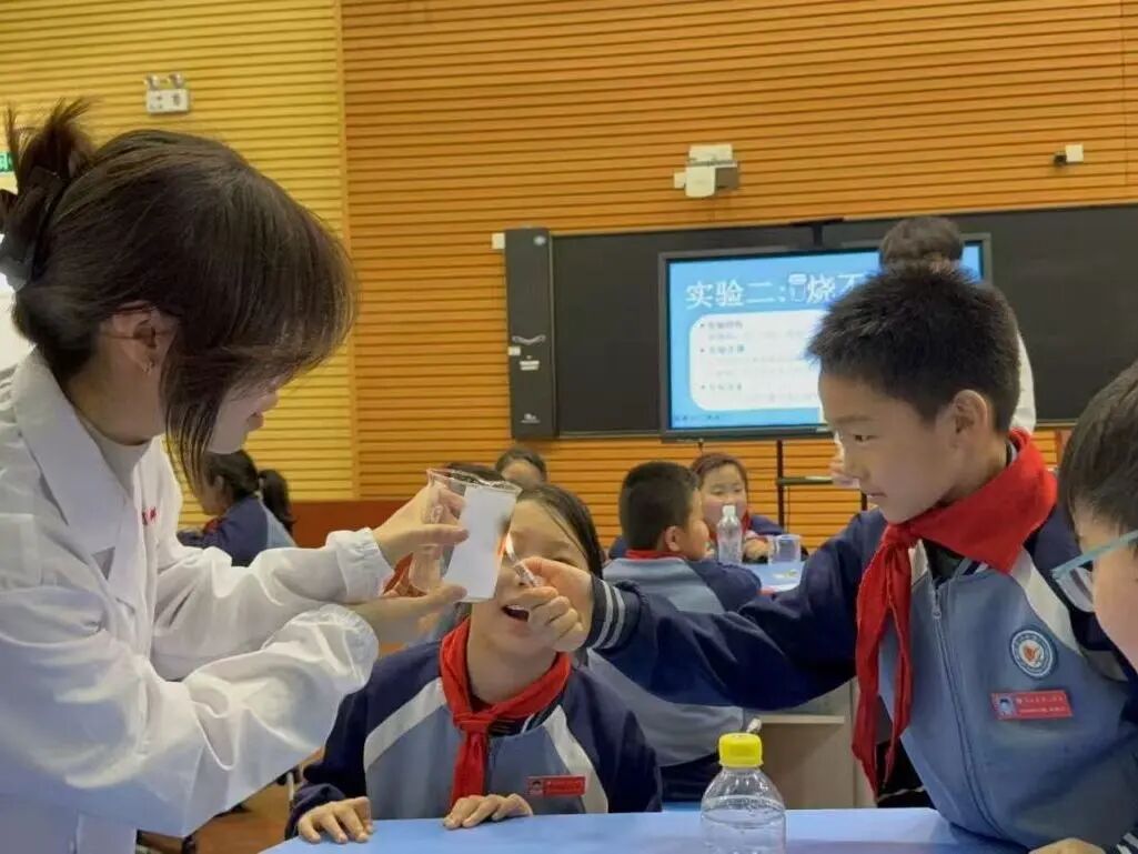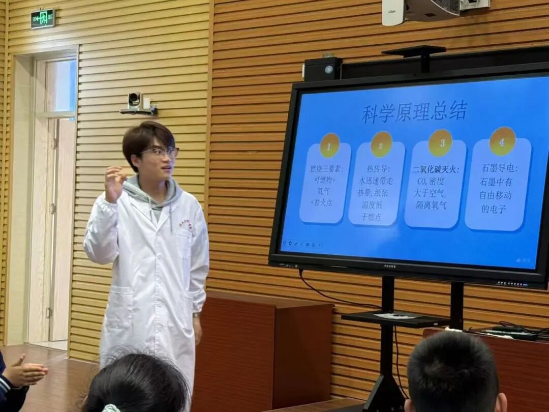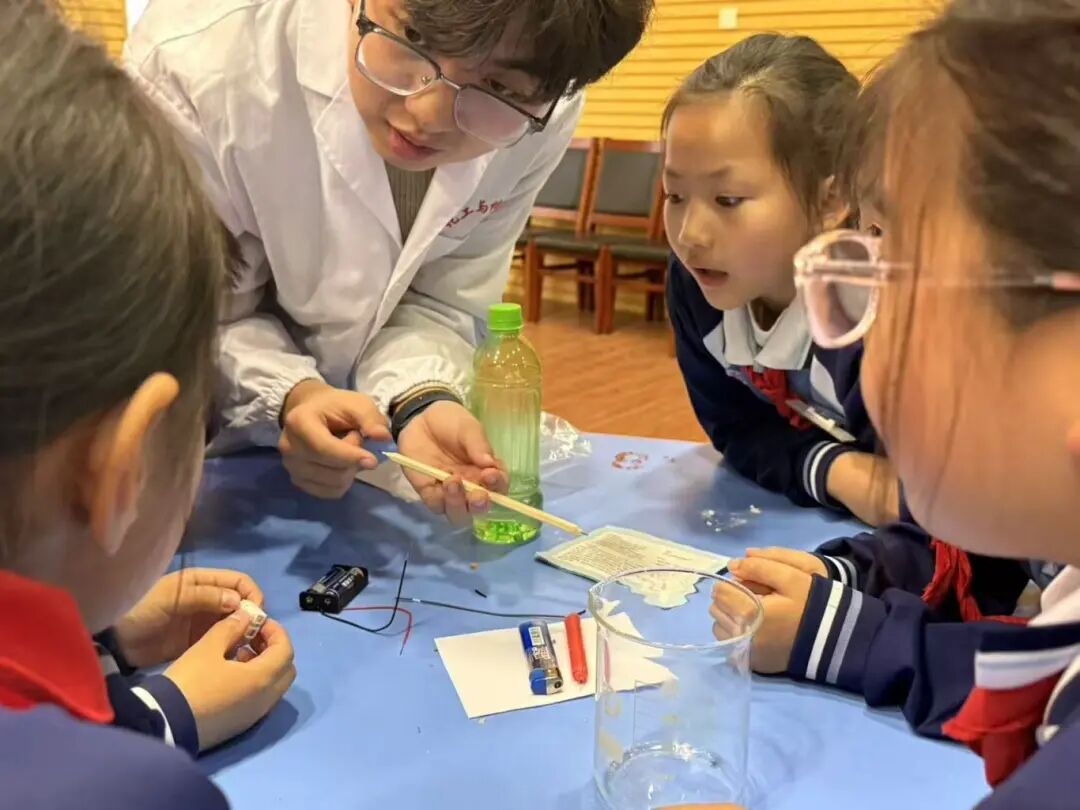 活动立足化工专业特色,以趣味实验为核心载体,设计了“点不着的纸”、小苏打灭火、铅笔芯导电、甲烷发酵等趣味实验,将抽象的燃烧三要素、灭火原理和用电安全知识,转化为直观可感的科学现象。活动现场,志愿者们耐心引导学生近距离观察实验过程、动手参与操作,并围绕实验原理展开互动讨论,在轻松的氛围中传递“科学防火、冷静灭火”的安全理念,让同学们在实践中掌握基础应急处置方法,有效提升了青少年的安全防范意识。