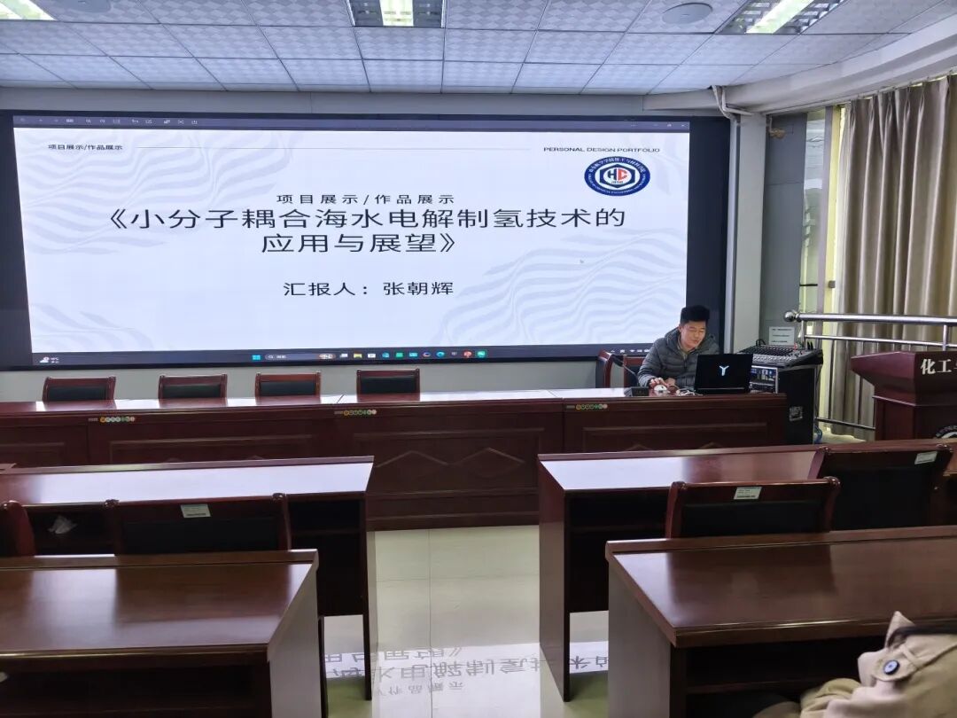 张朝辉毕业于法国里尔大学,长期深耕氢能技术与智能材料领域。报告中,他不仅介绍了团队研发的新型氧化石墨烯火灾预警薄膜,更重点阐述了海水电解制氢领域的三项创新成果,为低成本、可持续绿氢生产提供了新思路。报告内容详实、逻辑清晰,既深入剖析前沿科学问题,也聚焦科研成果应用转化。互动环节,张朝辉与新生围绕催化机理、材料制备工艺及技术产业化前景等话题热烈探讨,耐心解答疑问。